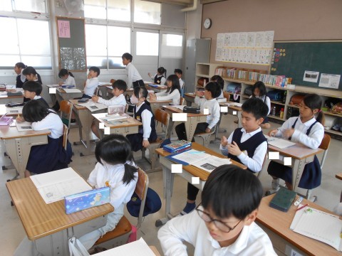 1組では,国語「春風をたどって」の学習をしていました。場面分けをしてお話の内容をまとめました。それぞれの場面はどのようなことが書かれてあるのかじっくり読んでいました。