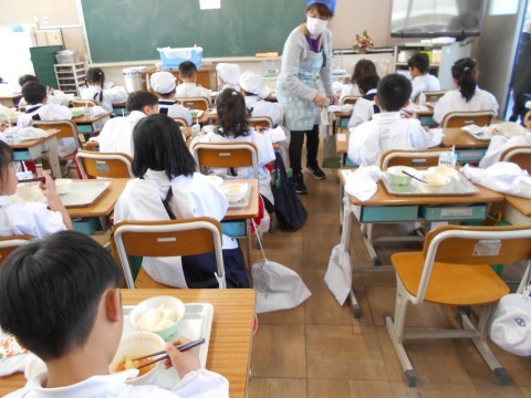 1年生は小学校での給食2日目です!