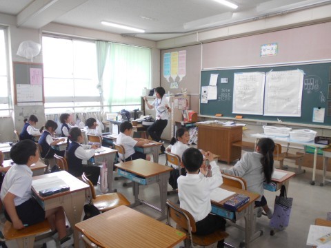 2組は算数で,一桁+二桁のひっ算の方法を考えていました。