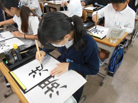 1組では,書写の学習で「湖」を書いていました。十分きれいに書けているのに,「この部分がうまくいかなかった」と自分に厳しく取り組んでいました。すばらしい!!