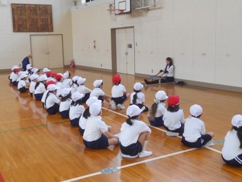 長座体前屈のやり方の説明を先生にしてもらっていました。