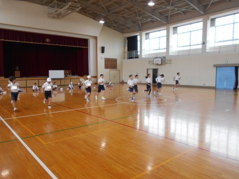 1組は,体育館でシャトルランをしていました。ペース配分を考えながら少しでもいい記録をめざしてがんばりました。