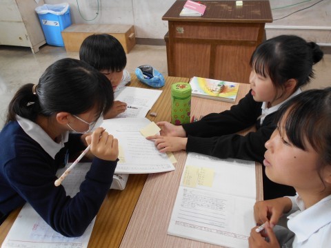 1組では,国語「帰り道」の学習をしていました。登場人物に書いた手紙を交流しました。友だちが書いたものをじっくり読んでコメントを書いていました。すてきですね☆
