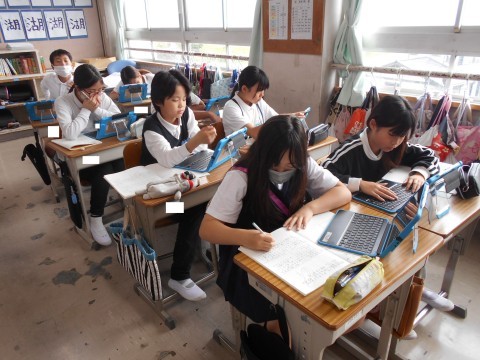 2組では,社会の学習で,日本国憲法の三大原則について調べていました。みんなが調べたことをもとにまとめました。さすが6年生,タブレットを使って上手に調べています!