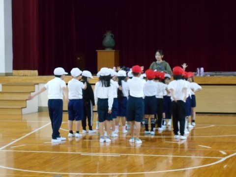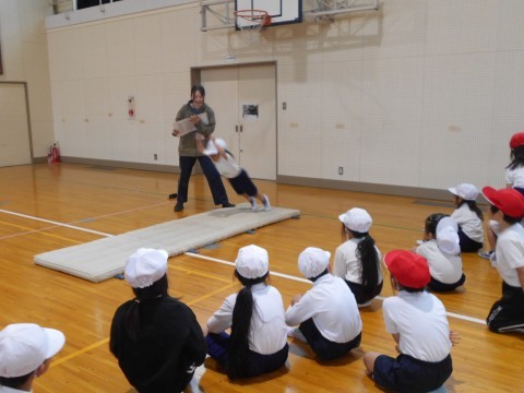 1組では体育の学習をしています。今日は,スポーツテストの立ち幅跳びの種目にチャレンジです!友だちを応援する声がとっても素敵でした♪