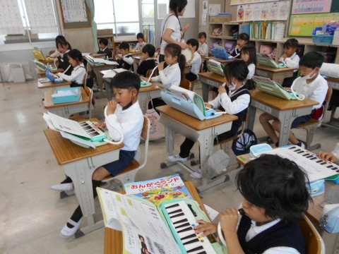 2組では,音楽の学習で鍵盤ハーモニカを練習していました。2年生になって,新しい曲に挑戦です!はじめは難しくても練習を繰り返すと弾けるようになりますよ!!
