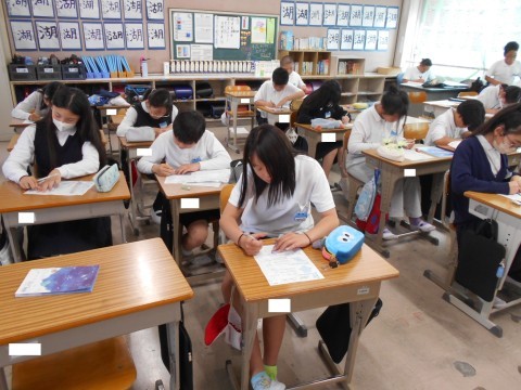 2組では,算数「対称な図形」の復習をしていました。プレテストやプリントを使ってたくさん問題を解きました。もうすぐテストです。がんばりましょう!