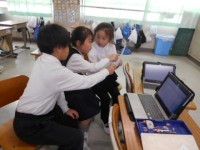 1年生で学習した観察の方法を使って、また算数で学んだ「長さ」の学習を生かして、苗の高さや葉の大きさを定規で測っている姿がとても素敵でした。