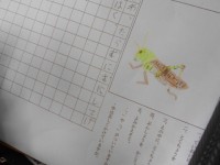 1年生はアジサイの色を表現するために、水色とピンクを画用紙ににじませ、それをちぎって貼り付けることで上手にアジサイを表現しています。