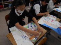 2組では、図工科で自画像を描いています。まずは、自分の顔をよく見て半顔を描きます。さて、残りの半顔はどうなるのか楽しみです♪