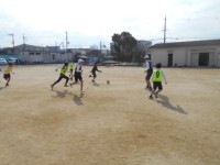 1組は体育でサッカーを楽しんでいます。広がるサッカーを展開することはなかなか難し...