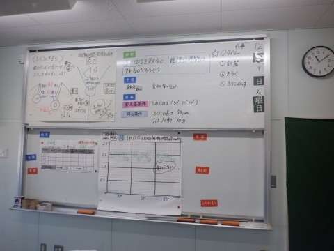 そこで,箱の周りに円になってみてはどうか という意見が出ました。そこで,箱を中心に,円になるように並んでやってみました。それでもまだ,遠い・近いの問題があるようでした。