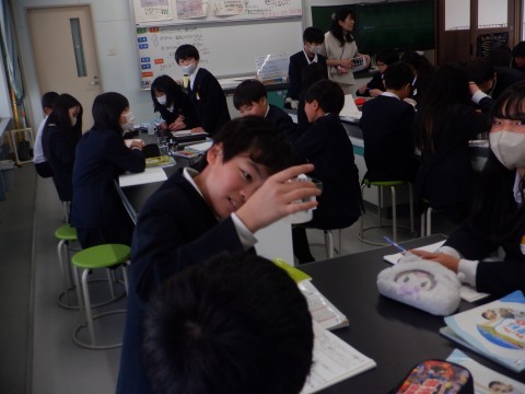 大きな問いのうち,この時間は大戦間の30年に何があったのか について追究したグループが発表しました。不景気や社会不安を打開するために満州を支配しようとした日本が,国際的に孤立していったことについて発表していました。