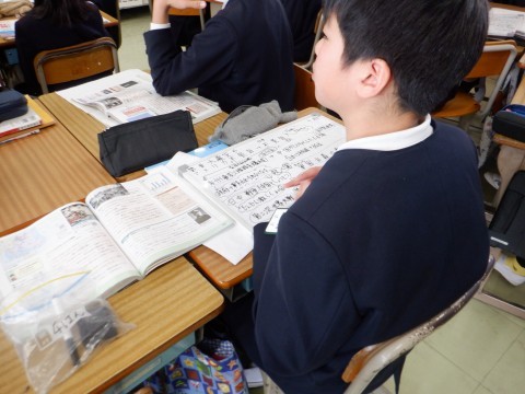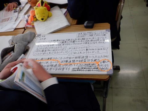 6年社会の学習です。クラスの大きな問いのもとに追究を進めています。
