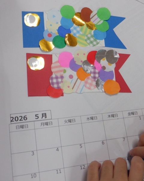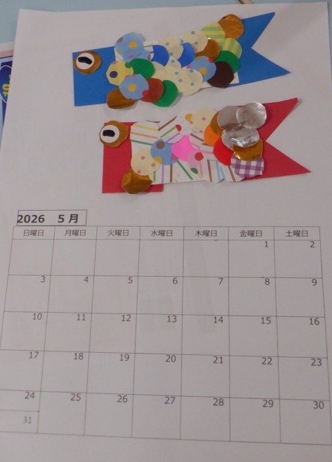 5月のカレンダーをつくりました。順序よく,折り紙,のりなどを使い,こいのぼりを作り,台紙にはりました。