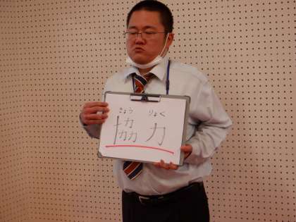 生徒指導の先生からのお話です。「協力」についてのお話でした。