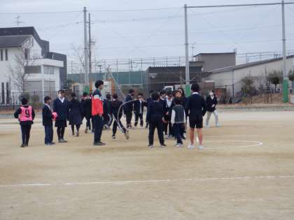 今日から長なわ大会が始まります。この時間は、1・3・5年の1組の大会です。