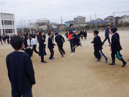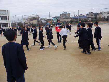 5年生が跳んでいるところです。開始から2分くらいのところです。3分で終了です。