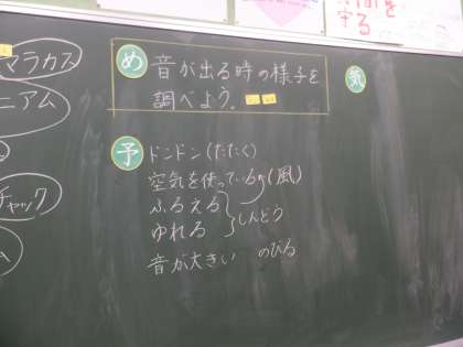 3年理科の学習です。音について学びます。この時間は、音が出ているときの様子を調べます。