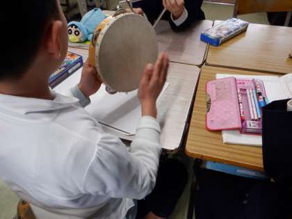 身近な楽器の音を鳴らして、そのものの様子を観察しているところです。