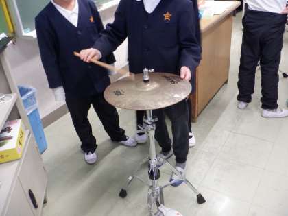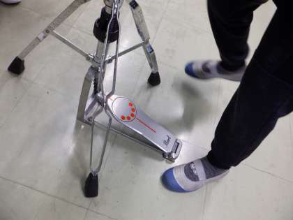 このシンバルは、ペダルを踏むと音が変わるので、それがなぜなのかを考えています。