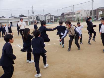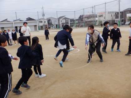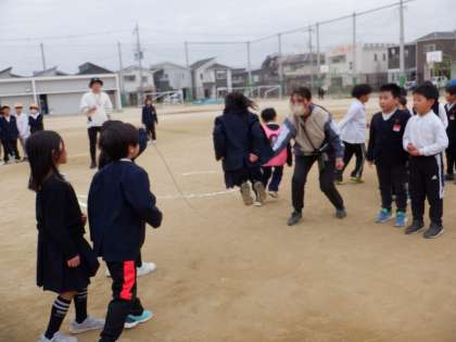 2年生が跳んでいるところです。低学年は、先生が回す人の1人になります。
