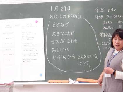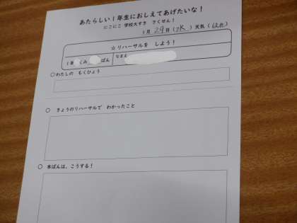 今日のリハーサルでの目標を立てているところです。このあとワークシートに記入します。