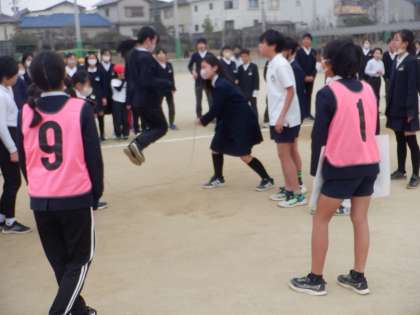 本番が始まりました。6年生は高速回転のなわにどんどん入って跳んでいます。