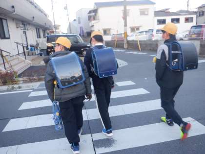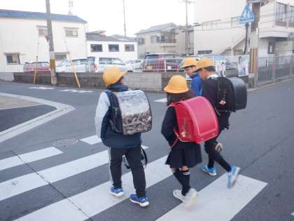 今朝の登校の様子です。気温が低くて風も強く、とても寒い朝です。