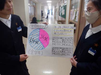 児童会の活躍 4 公開日 2025/02/06 更新日 2025/02/06 6年 この後は、かぶらない理由などをよく知るために、アンケートを行うとのことでした。自分たちの学校を自分たちでよりよくしていこうとする児童会の素晴らしい活躍です。