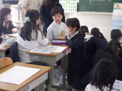 前の時間まで、各自で調べ、それを交流してきました。これまでの学習について自分が学んたことを、近くの人たちと話し合いました。