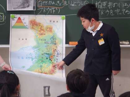 自然環境との関係については、大阪府の地形図を使って、うまく説明していました。