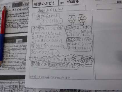 この人もポスター風にまとめています。ぶどうの消費量をふやすことがぶどう作りを守ることだと考えているようで、ぶどう狩りをお勧めしています。みんなよく考えていました。