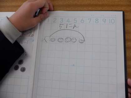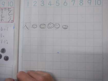 この場面を図に表そうとしています。人の数だとわかるように、人を表す〇には顔をかきました。