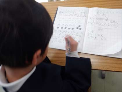 この時間の学習をふりかえって授業を終えました。しっかり書くことができています。