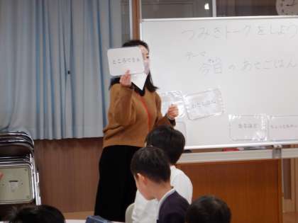 太陽学級 積み木トーク 2 公開日 2025/02/07 更新日 2025/02/07 太陽 学級 まずは、先生たちが見本を見せました。話題を変えたときにどんな言葉を使ったかな との問いに、「ところで」を使っていたと答えています。