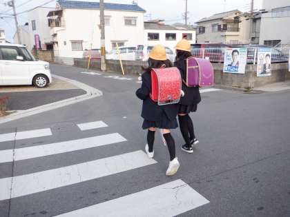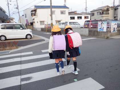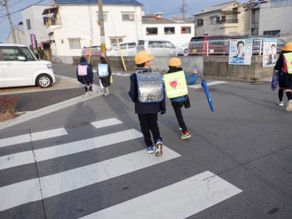 今朝の登校の様子です。風は収まりましたが、冷え込みの強い朝です。