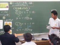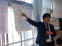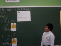 黄色くなったさやを開いて、中の様子を調べています。黄緑色の豆(種)ができていました。