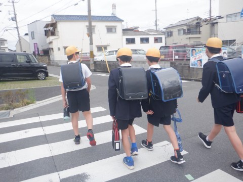 今朝の登校の様子です。曇っていて日差しが弱いので肌寒く感じます。