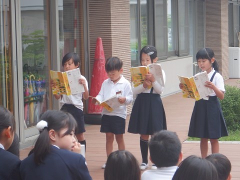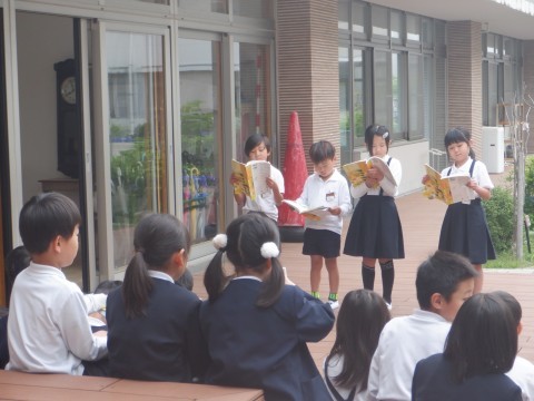 役割を交代しながら、工夫した音読を発表しています。