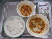 今日の給食は、コッペパン・牛乳・チキンブロス・じゃがいものバジル焼きです。