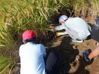 この人たちは、三角形を切り取っています。さらにそこから3つの角を切り取り、合わせて、その大きさを調べようとしています。