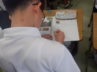 6年国語の学習です。物語「やまなし」を、各自が「私の問い」をもって読み解いています。この時間は、自分はこの作品をこのように読んだ という評論文を書いているところです。