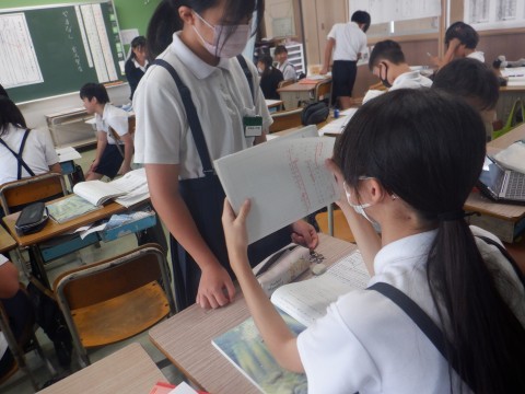 自分の考えを仲間に読んでもらい、意見をもらおうとしています。