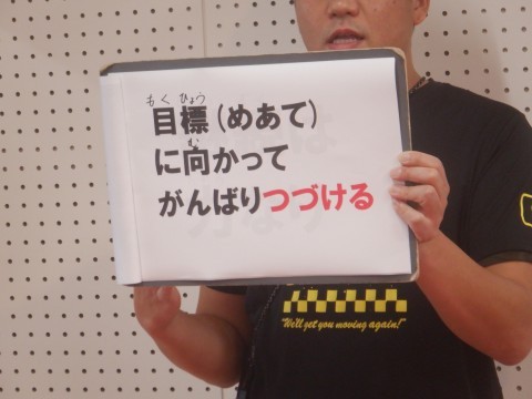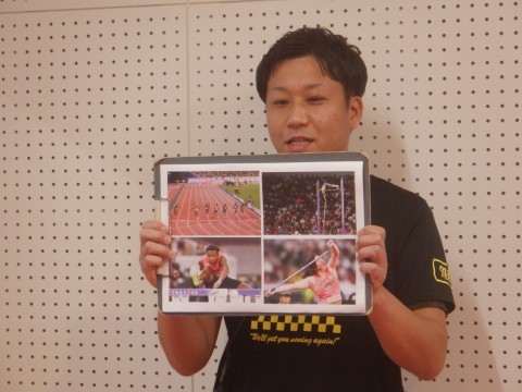 次は先生からのお話です。東京で開かれていた世界陸上大会から,目標に向かって努力を続けることの大切さを話してもらいました。