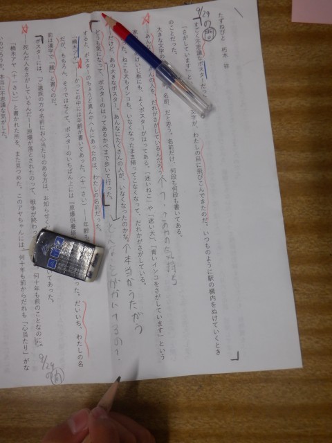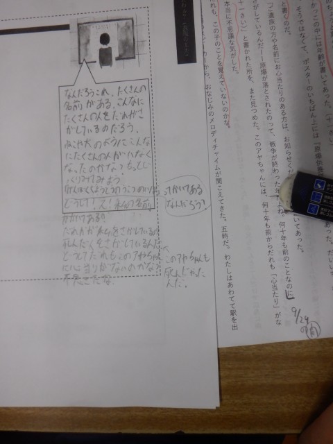 主人公の最初の段階での心情を,本文のいろいろなところを根拠に考えています。