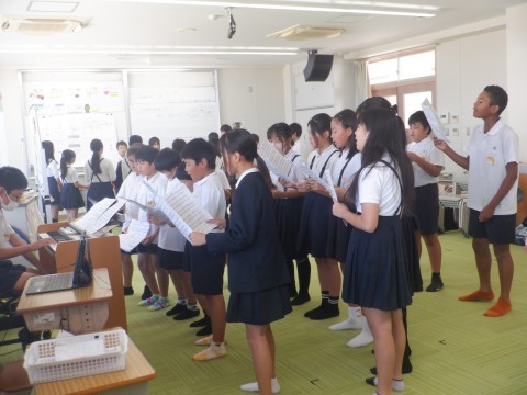 アルトパートはメロディではないので,音をとるのがむずかしいです。集まって問題点を確認し,また練習することを繰り返していました。