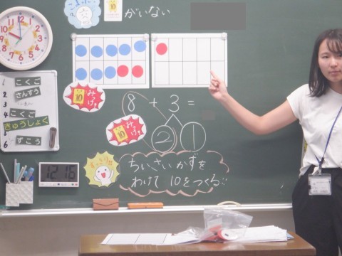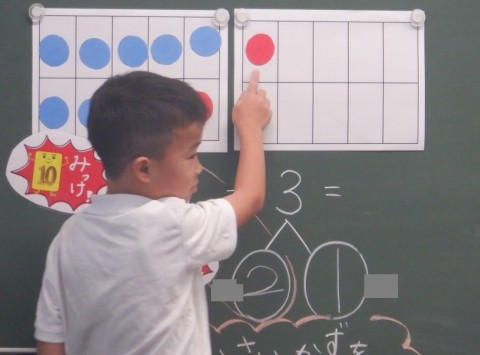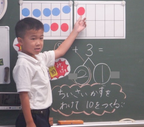 サクランボ図の「1」が,○の図のどれにあたるのかを正しくとらえて,みんなに説明しているところです。