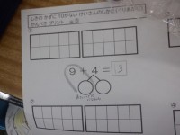9+4の4を1と3に分け,その1を9と合わせて10を作りました。