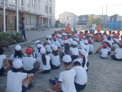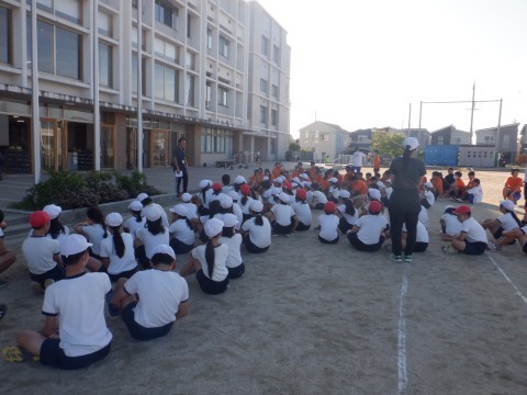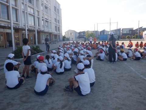 連合運動会をめざしている6年生の様子です。今日は放課後,泉ヶ丘東中学校の陸上部のみなさんが来てくださり,6年生の有志の人たちに各種目のアドバイスをしてくれました。連合運動会がきっかけで陸上部に入ったという人もいました。